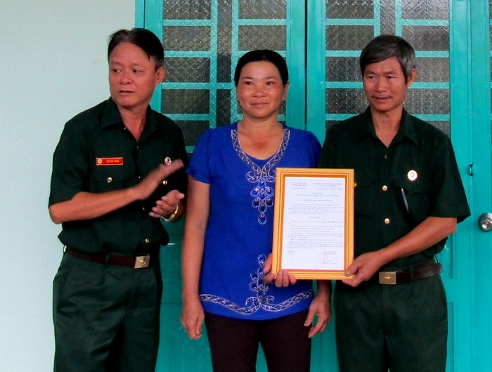 | Trao quyết định sở hữu căn nhà đồng đội cho gia đình CCB Nguyễn Duy Khuyến. |