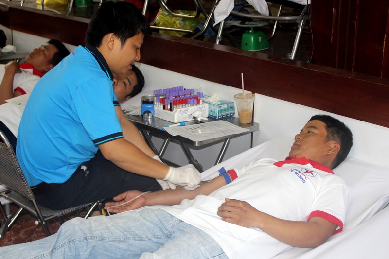 Cán bộ, công nhân viên ngành Điện Tây Ninh tham gia hiến máu. |