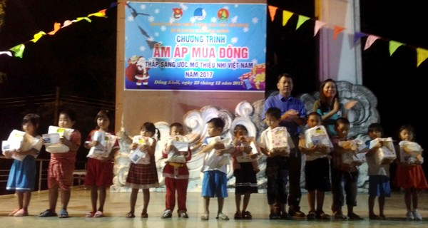 Ngoài ra, Xã đoàn Đồng Khởi còn tặng thêm 40 phần quà cho trẻ em nghèo, mỗi phần trị giá 200.000 đồng, gồm bánh, tập trắng và 100.000 đồng tiền mặt.