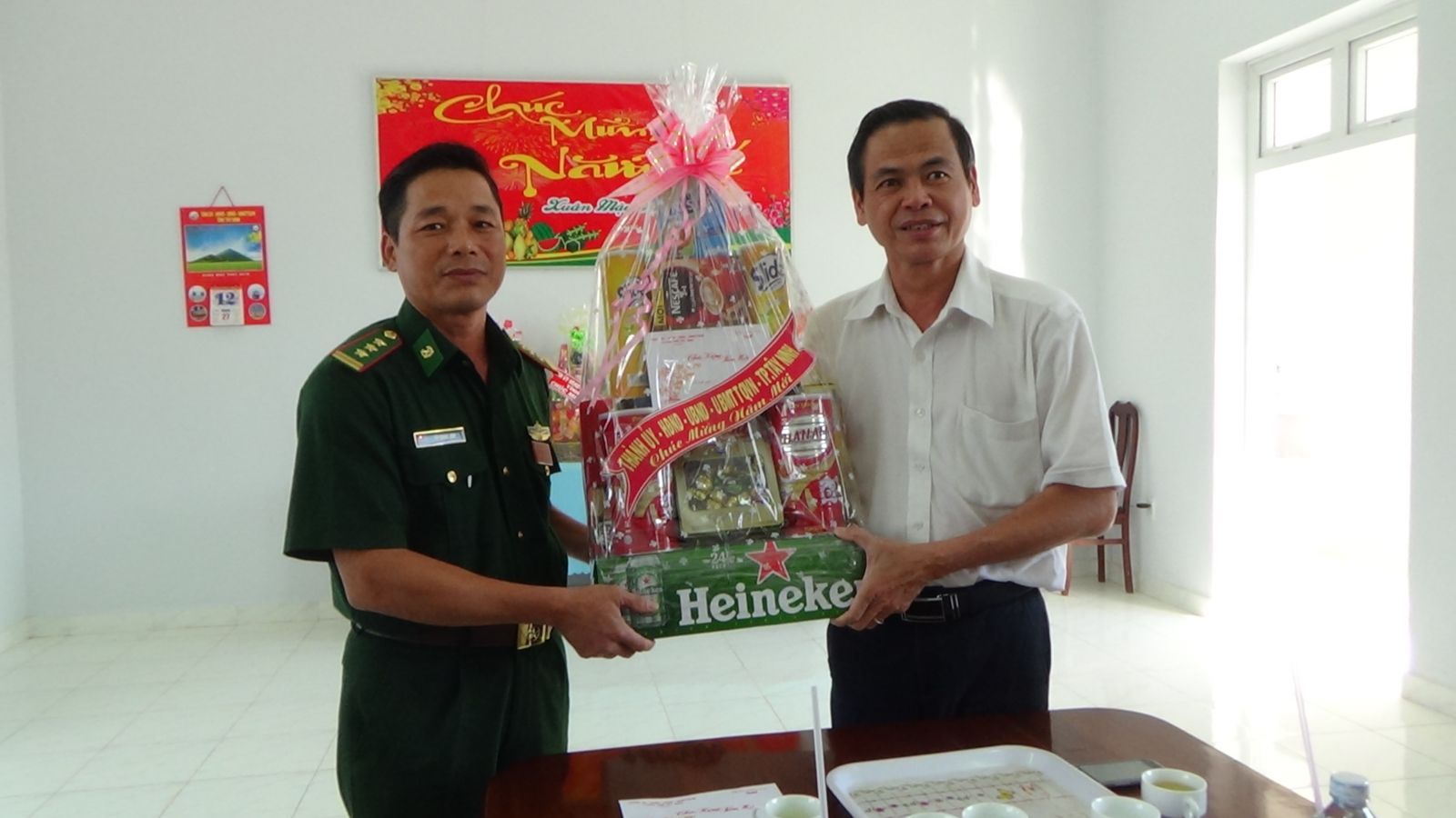 Bí thư Thành uỷ TP.Tây Ninh Trần Hữu Hậu trao quà cho lãnh đạo Đồn Biên phòng Ninh Điền. |