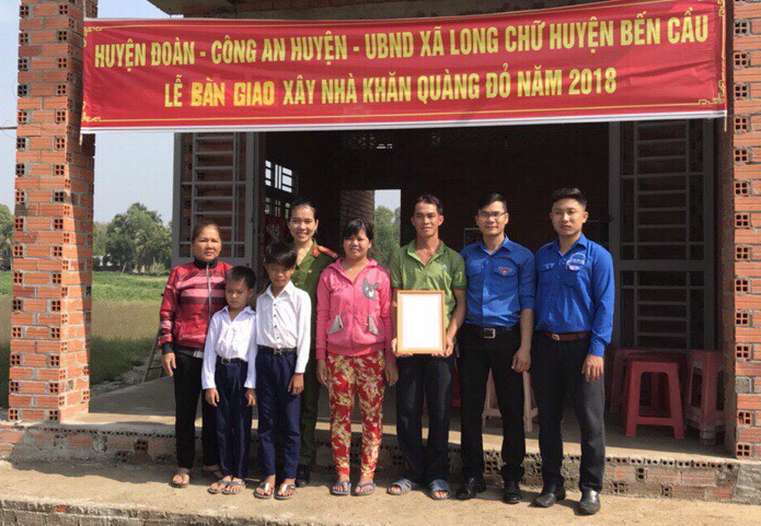 * UBND xã Long Chữ (Bến Cầu) bàn giao căn nhà “Khăn quàng đỏ” cho gia đình anh Nguyễn Văn Vàng, sinh năm 1985, ngụ ấp Long Hòa 2, xã Long Thuận, huyện Bến Cầu.