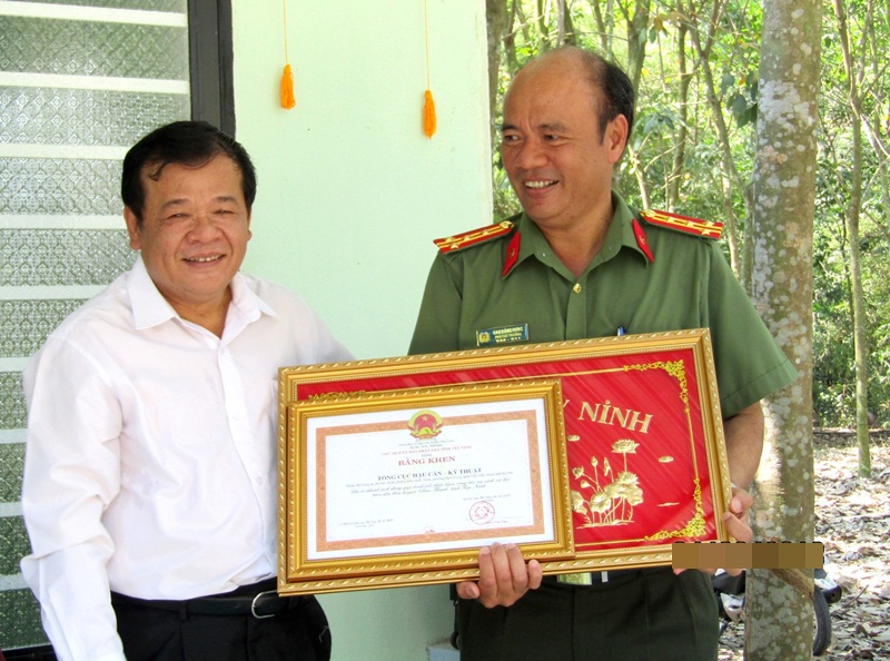 Ông Phạm Văn Tân- Chủ tịch UBND tỉnh trao bằng khen của UBND tỉnh cho đại diện Tổng cục Hậu cần-Kỹ thuật Bộ Công an. |
