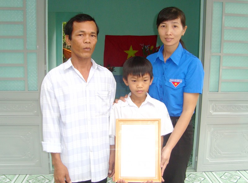 Trao học bổng “Tuổi thơ tiếp bước cha anh” cho học sinh nghèo hiếu học. |