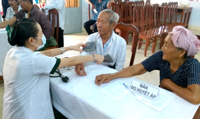 Khám bệnh cho người già xã An Bình. |
