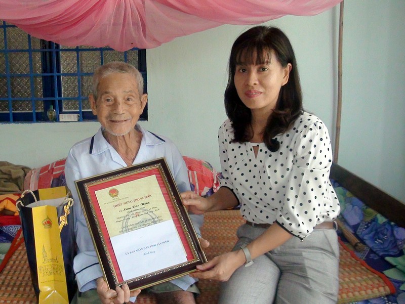 Mới đây, bà Nguyễn Thị Xuân Hương- Bí thư Huyện ủy Dương Minh Châu dẫn đầu đoàn lãnh đạo huyện đến thăm, tặng thiếp chúc thọ của Chủ tịch UBND tỉnh Tây Ninh cùng phần quà và tiền mặt trị giá 400.000 đồng cho các cụ: Nguyễn Văn Nguồn, Lê Văn Thân, Mai Thị Hý (xã Suối Đá), Nguyễn Thị Kế và Lâm Văn Thửa (xã Phan). Các cụ ông, cụ bà đều sinh năm 1928.