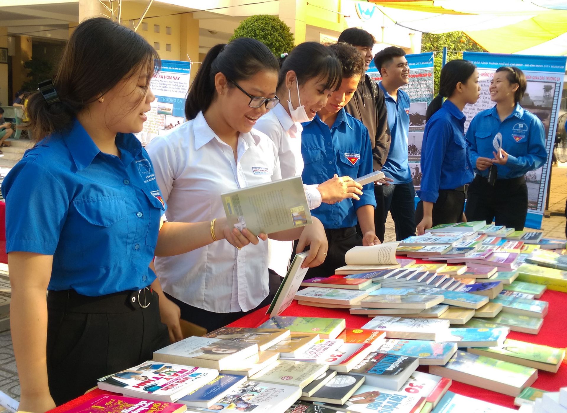 Các em học sinh trường THPT Nguyễn Thái Bình lựa chọn sách đọc.