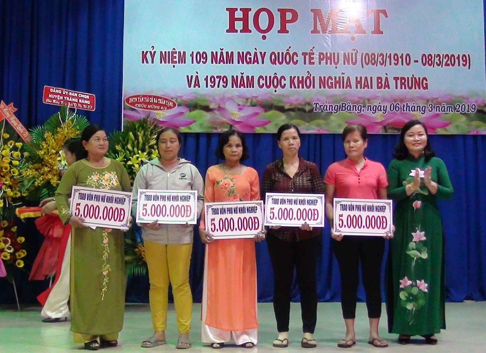 Năm 2018, Hội LHPN các cấp huyện Trảng Bàng phối hợp xét cho 3.148 hội viên phụ nữ nghèo vay vốn số tiền trên 60 tỷ đồng; hỗ trợ khởi nghiệp, giúp đỡ 88 hội viên, phụ nữ số tiền hơn 300 triệu đồng; vận động tặng hơn 5.241 phần quà, 472 suất học bổng, xây tặng 19 mái ấm tình thương với tổng kinh phí trên 2,7 tỷ đồng.