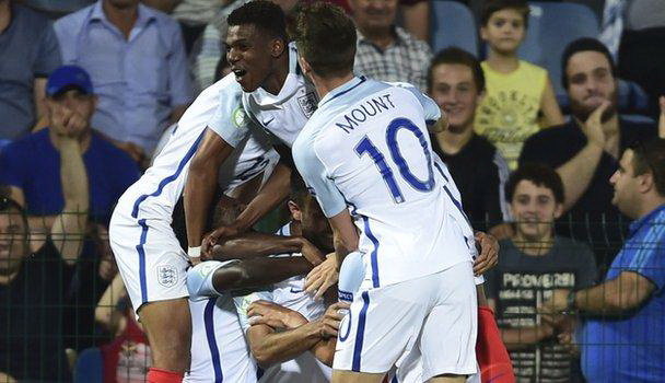 Các cầu thủ U-19 Anh ăn mừng bàn thắng vào lưới Bồ Đào Nha. Ảnh: BBC.