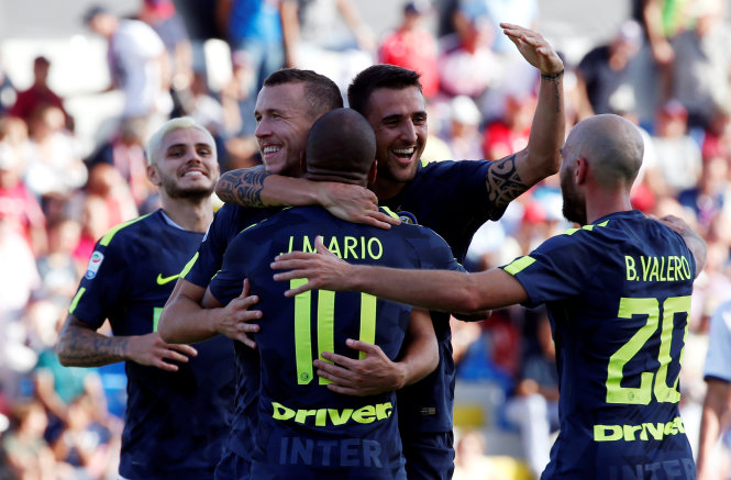 Các cầu thủ Inter Milan ăn mừng. Ảnh: REUTERS