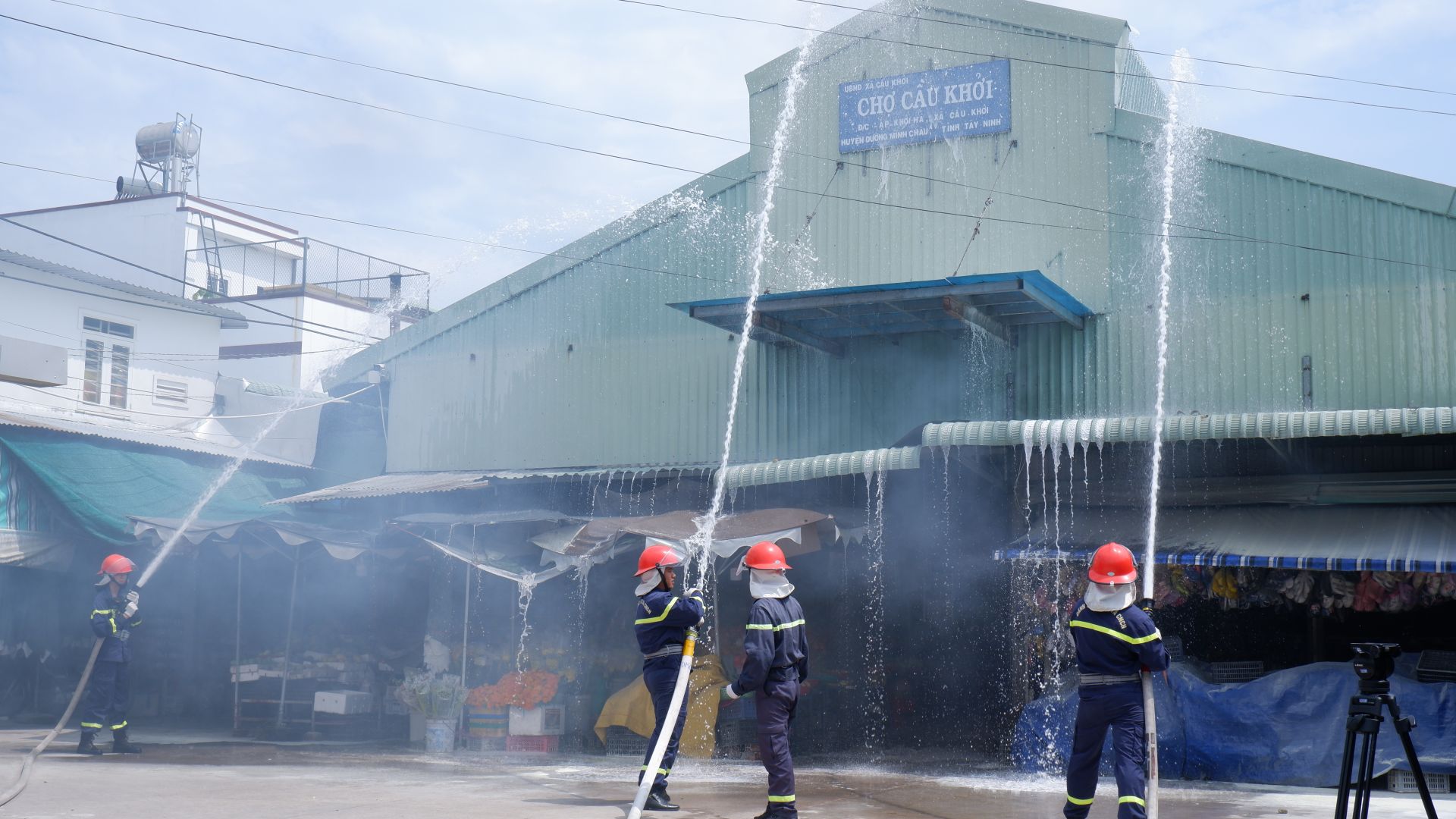 Ngày 3.10, Đội Cảnh sát Phòng cháy chữa cháy và Cứu nạn cứu hộ (PCCC và CNCH) Công an huyện Dương Minh Châu phối hợp với UBND xã Cầu Khởi tổ chức diễn tập phương án chữa cháy và cứu nạn, cứu hộ tại chợ Cầu Khởi.
