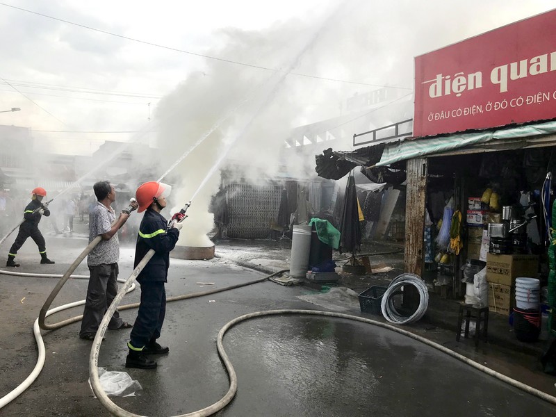 Lúc này, 2 xe chữa cháy cùng 13 cán bộ, chiến sĩ PCCC-CNCH Công an Tây Ninh đến ứng cứu, phun nước chữa cháy tại phía nam và đông nhà lồng chợ, ngăn chặn không cho ngọn lửa cháy lan. Sau 20 phút tập trung chữa cháy, đám cháy đã được dập tắt hoàn toàn.