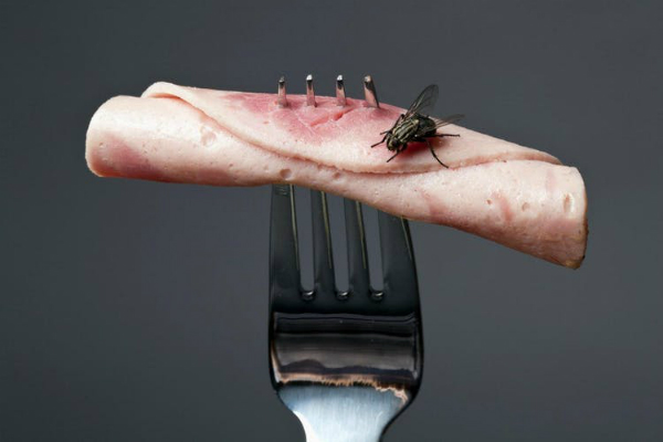 Khi ruồi đậu lên thức ăn, nó mang theo những thứ bẩn thỉu hoặc vi khuẩn từ nơi cuối cùng đặt chân đến (có thể là một đống phân). Nếu đó là một con ruồi cái có thể nó sẽ đẻ trứng lên thức ăn.