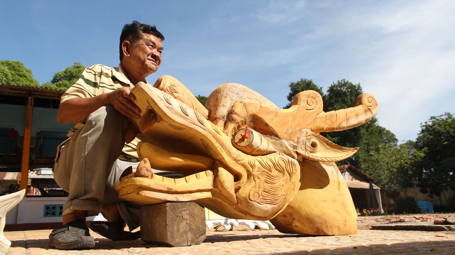 Từ một người không qua trường lớp điêu khắc hay nghề mộc trước đó, nhưng bằng sự kiên trì bền bỉ, và khiếu thẩm mỹ, ông Khoăn đã dần quen với công việc mới: điêu khắc rồng gỗ.