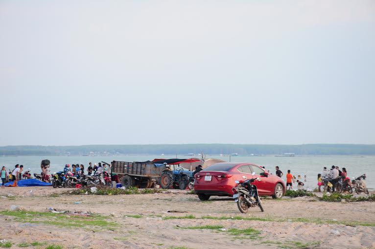 Hàng ngàn người tập trung đến bãi biển nước ngọt vui chơi, tắm mát.