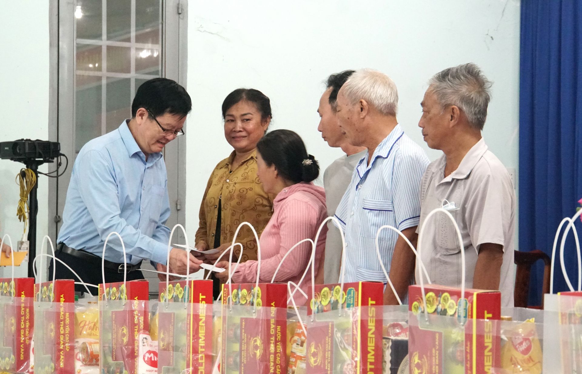 Tại xã Tân Lập, ông Mai Văn Chính và ông Nguyễn Thành Tâm trao tặng 10 phần quà (3 triệu đồng/phần) cho 10 gia đình chính sách trên địa bàn xã và trao 40 triệu đồng ủng hộ “Quỹ Đền ơn đáp nghĩa huyện Tân Biên”.