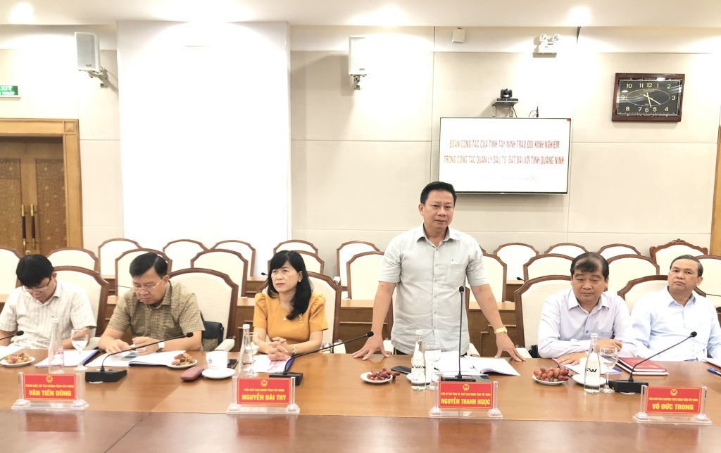 Tại buổi làm việc, lãnh đạo hai tỉnh Quảng Ninh và Tây Ninh trao đổi kinh nghiệm liên quan tới công tác thu hồi đất, bồi thường giải phóng mặt bằng; giao đất, cho thuê đất; công tác xây dựng giá đất; tổ chức bộ máy, mô hình hoạt động của Ban Xúc tiến và Hỗ trợ đầu tư; kinh nghiệm triển khai xúc tiến đầu tư, hỗ trợ đầu tư, tháo gỡ khó khăn, vướng mắc cho doanh nghiệp, cải thiện môi trường đầu tư và kinh doanh.
