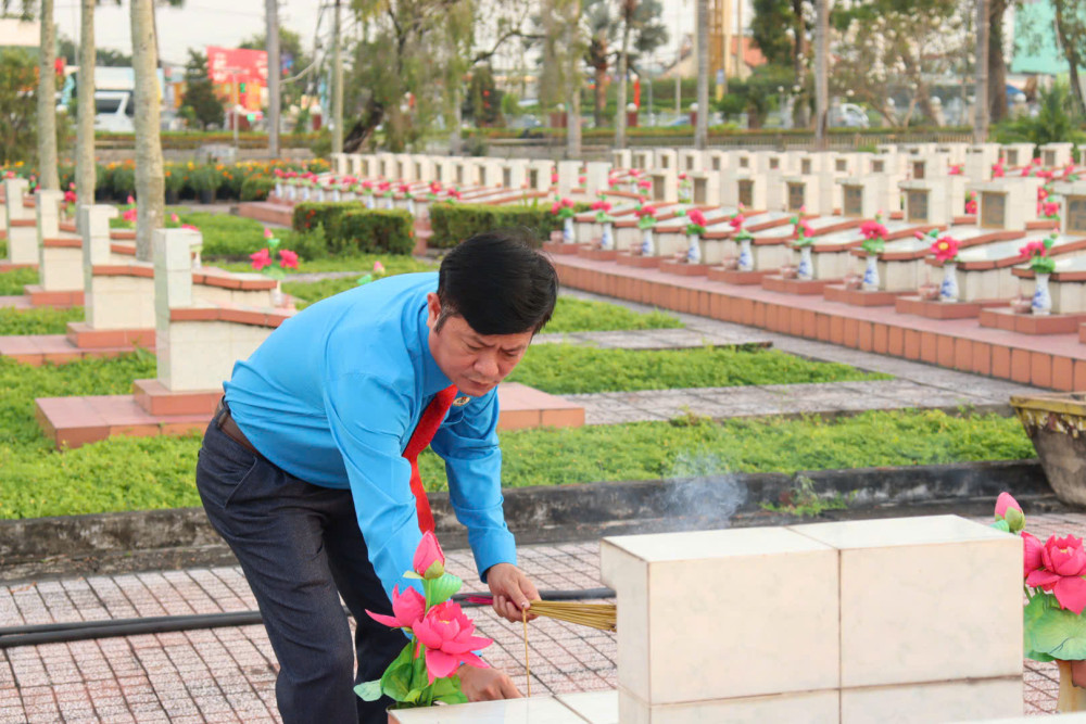 Trong không khí trang nghiêm, thành kính, đoàn đại biểu đặt vòng hoa và dâng hương trước Đài tưởng niệm các anh hùng liệt sĩ; dành phút mặc niệm bày tỏ lòng tri ân sâu sắc, tưởng nhớ công lao to lớn của các anh hùng liệt sĩ – những người con ưu tú của dân tộc đã anh dũng hy sinh vì sự nghiệp đấu tranh giải phóng dân tộc, thống nhất đất nước.