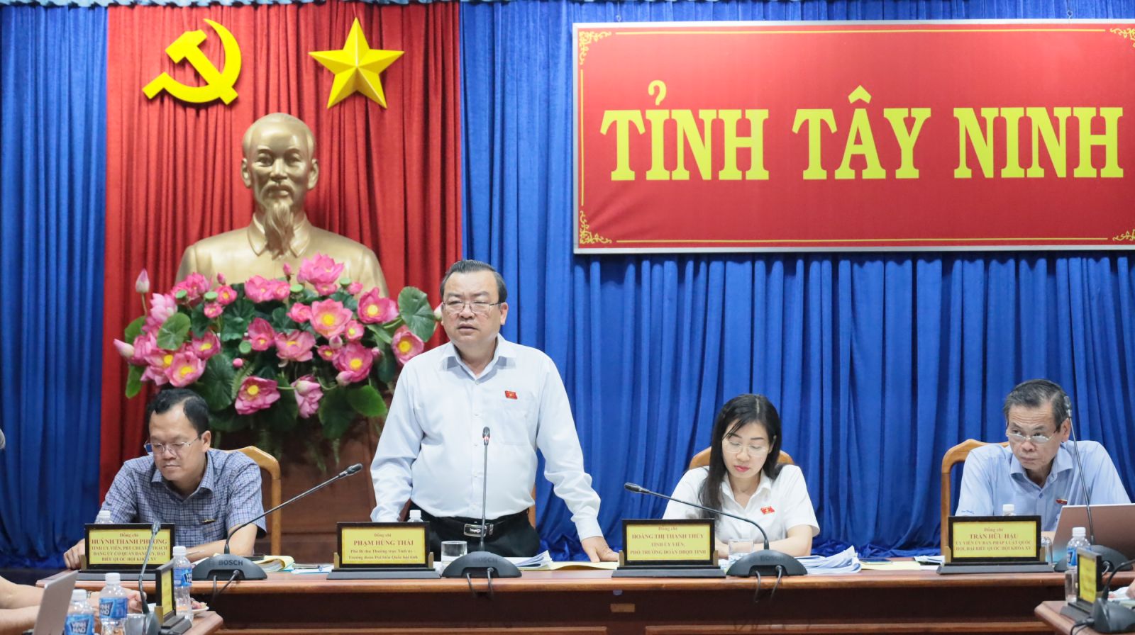 Phó Bí thư Thường trực Tỉnh uỷ Phạm Hùng Thái, Trưởng Đoàn ĐBQH tỉnh Tây Ninh chủ trì buổi giám sát. Cùng dự có bà Hoàng Thị Thanh Thuý- Phó trưởng Đoàn chuyên trách Đoàn ĐBQH tỉnh; các ĐBQH: Trần Hữu Hậu, Huỳnh Thanh Phương; lãnh đạo HĐND, Uỷ ban MTTQVN tỉnh.