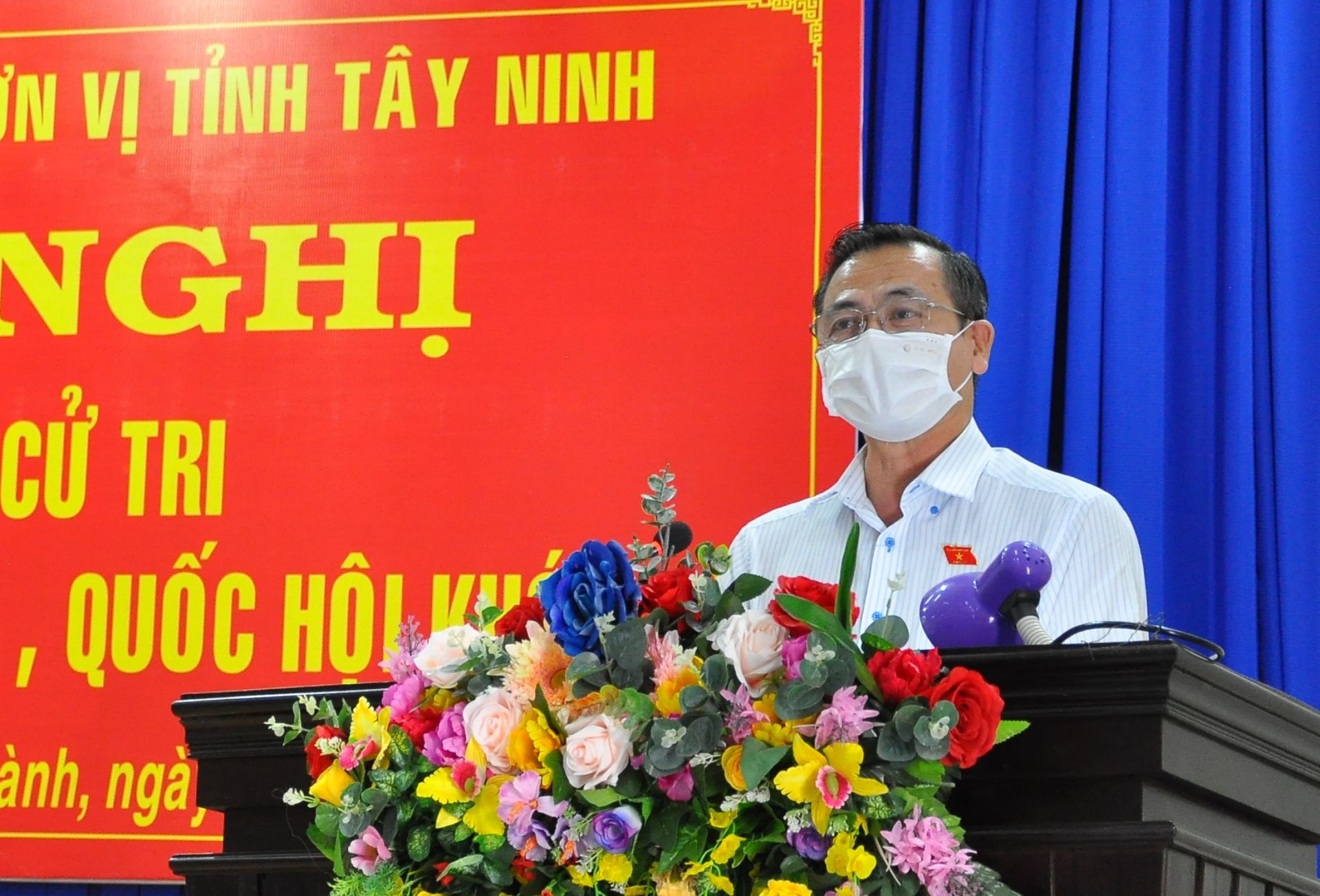 Tại hội nghị, đại biểu Trần Hữu Hậu, đại diện Đoàn ĐBQH tỉnh báo cáo kết quả kỳ họp thứ hai, Quốc hội khoá XV. Theo đó, Kỳ họp diễn ra trong 16 ngày, được chia thành 2 đợt theo hai hình thức họp trực tuyến và tập trung. Quốc hội đã dành nhiều thời gian thảo luận, đánh giá kết quả thực hiện kế hoạch phát triển kinh tế - xã hội, ngân sách Nhà nước năm 2021; công tác phòng, chống dịch Covid-19, tình hình và kết quả thực hiện Nghị quyết số 30/2021/QH15 Kỳ họp thứ nhất, Quốc hội khoá XV.
