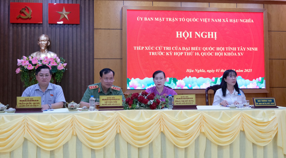 Chiều 01/10, Đoàn đại biểu Quốc hội (ĐBQH) tỉnh Tây Ninh tổ chức Hội nghị tiếp xúc cử tri trước Kỳ họp thứ 10, Quốc hội khóa XV tại xã Hậu Nghĩa.