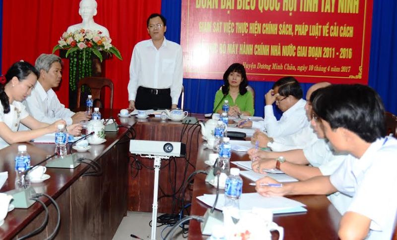 Hôm 10.4, Đoàn Đại biểu Quốc hội (ĐBQH) tỉnh do ông Huỳnh Thanh Phương- Phó trưởng đoàn ĐBQH đơn vị tỉnh Tây Ninh làm trưởng đoàn đã có buổi giám sát việc thực hiện chính sách, pháp luật về cải cách tổ chức bộ máy hành chính nhà nước giai đoạn 2011-2016 trên địa bàn huyện Dương Minh Châu.