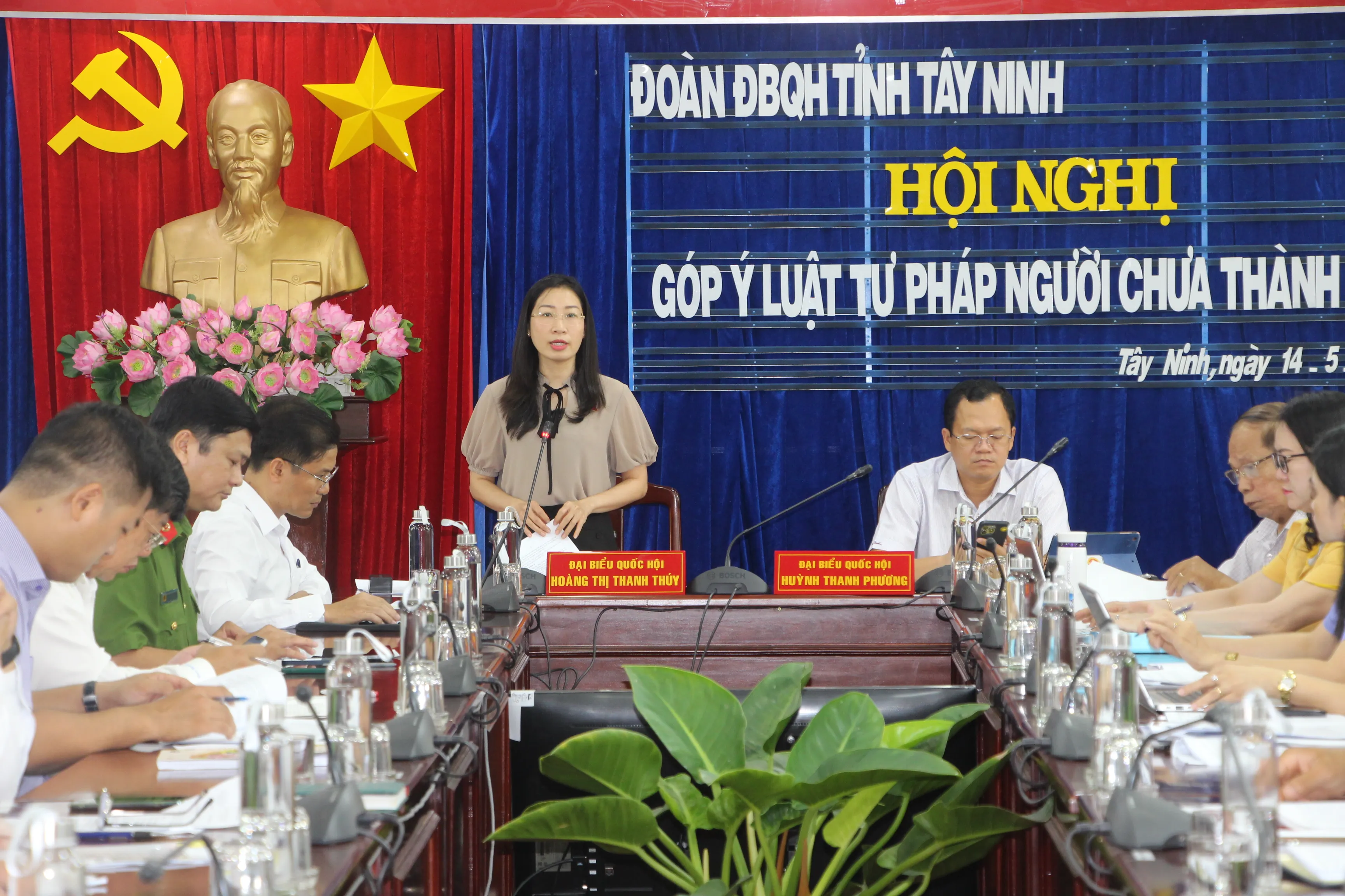 Ngày 14.5, Đoàn ĐBQH tỉnh Tây Ninh tổ chức hội nghị góp ý đối với dự án Luật Tư pháp người chưa thành niên. Bà Hoàng Thị Thanh Thuý- Phó trưởng Đoàn chuyên trách Đoàn ĐBQH tỉnh chủ trì hội nghị.