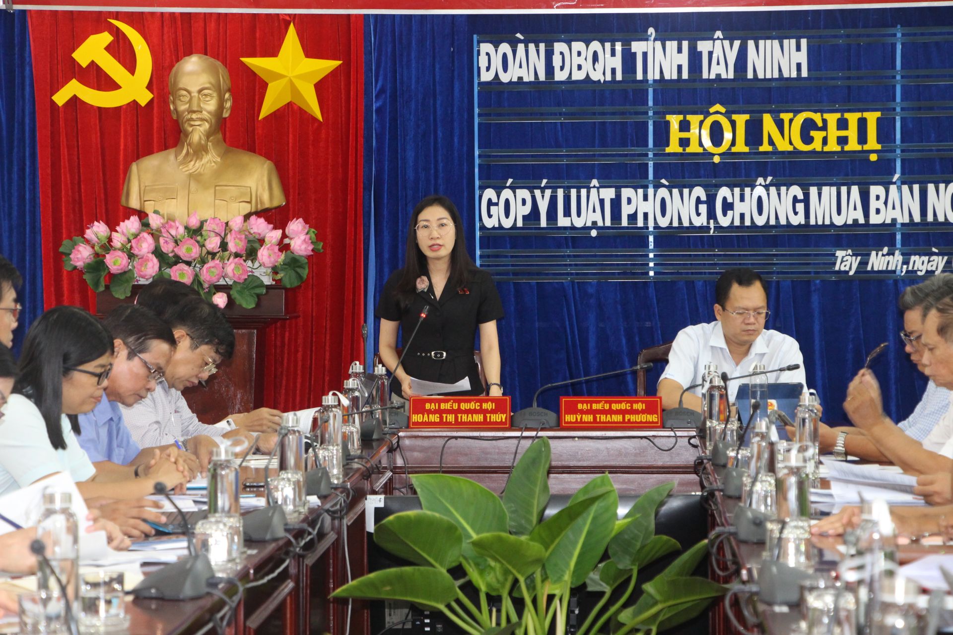 Ngày 9.5, Đoàn ĐBQH tỉnh tổ chức hội nghị góp ý dự thảo Luật Phòng, chống mua bán người (sửa đổi). Bà Hoàng Thị Thanh Thúy - Phó trưởng đoàn chuyên trách Đoàn ĐBQH tỉnh chủ trì hội nghị.