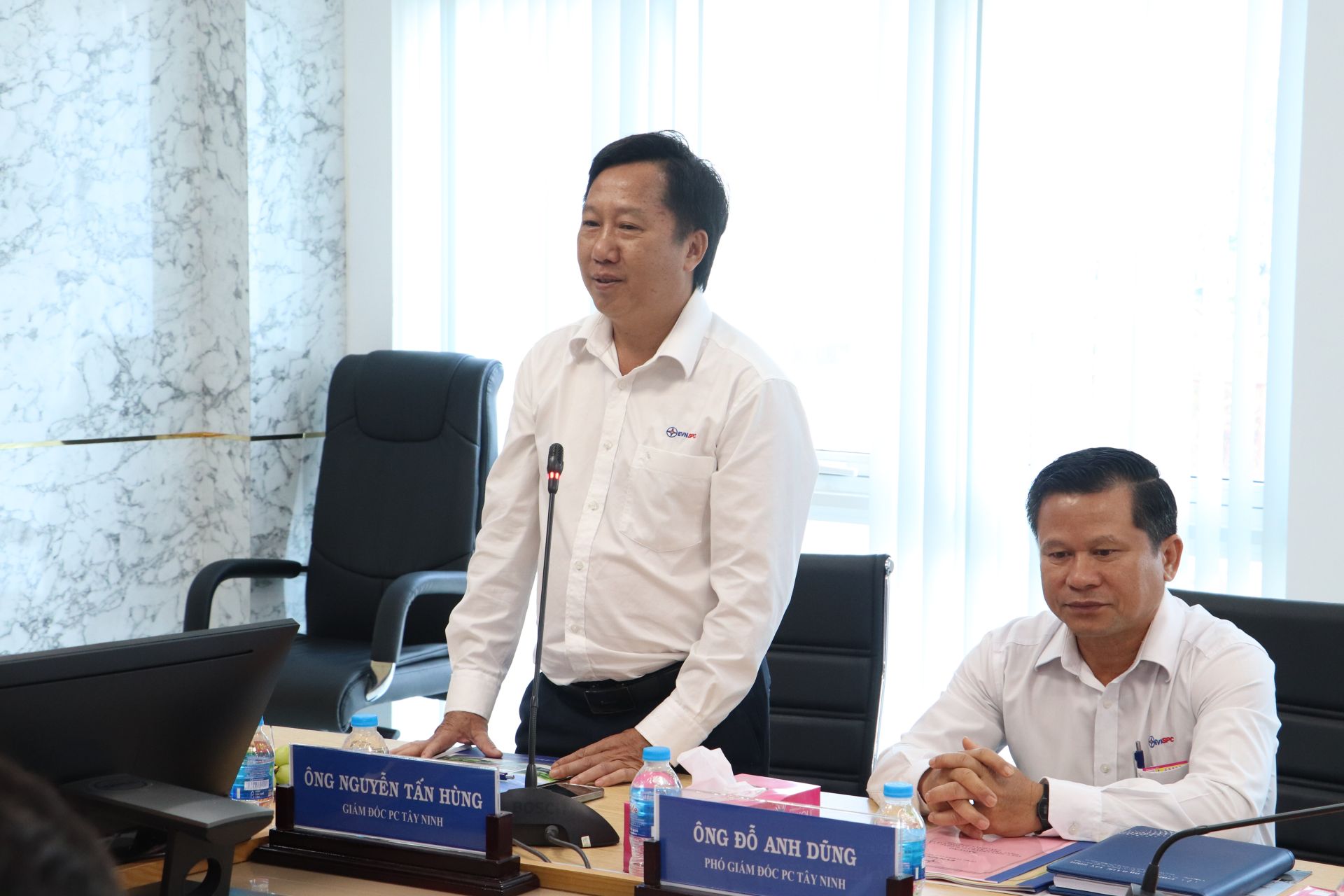 Ông Nguyễn Tấn Hùng- Giám đốc Công ty Điện lực Tây Ninh phát biểu tại buổi làm việc.