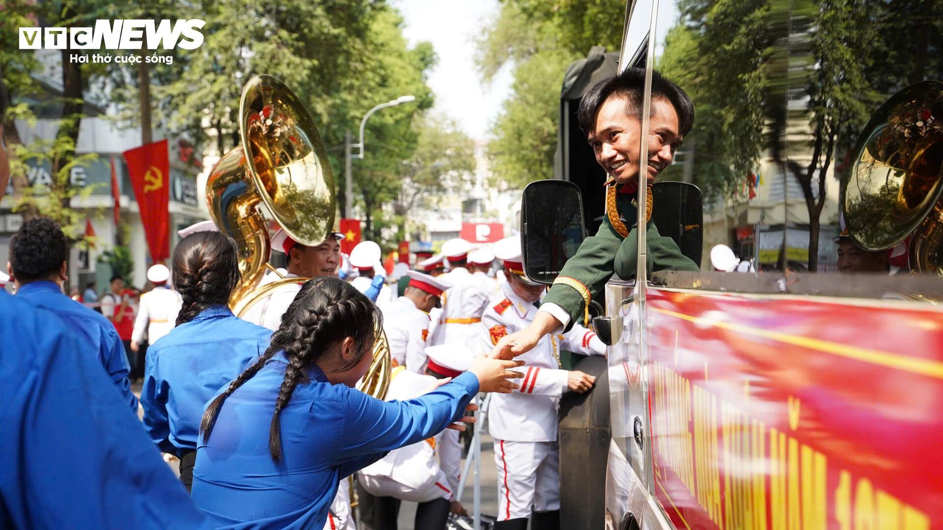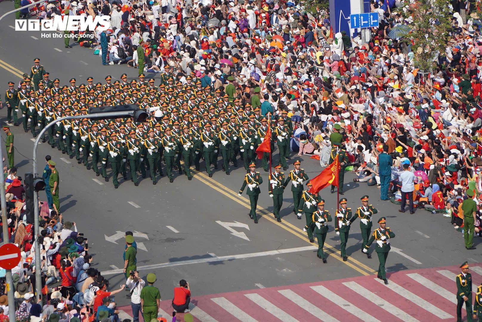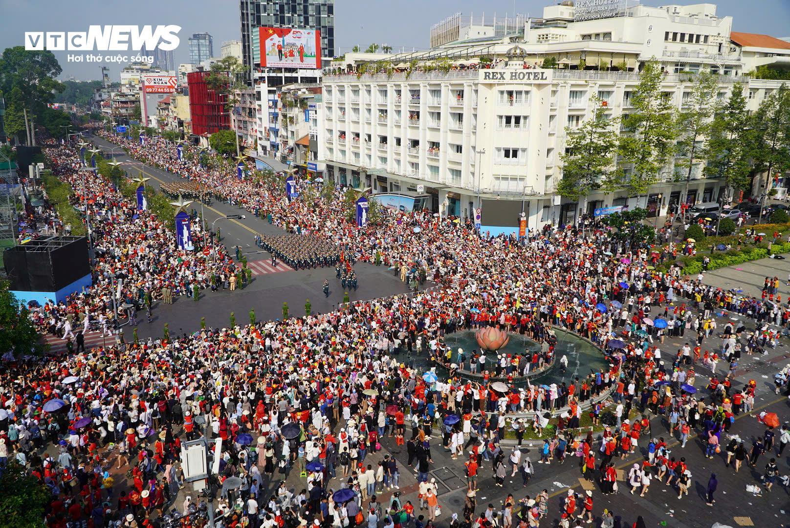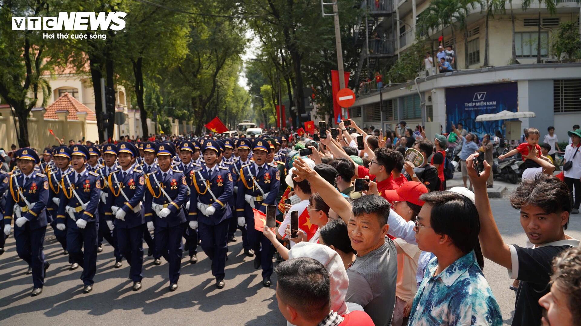 Kết thúc lễ diễu binh, diễu hành, các khối diễu binh sải bước trên nhiều tuyến đường tại trung tâm Quận 1 như: phố đi bộ Nguyễn Huệ, Nam Kỳ Khởi Nghĩa, Tôn Đức Thắng, Mạc Đĩnh Chi...