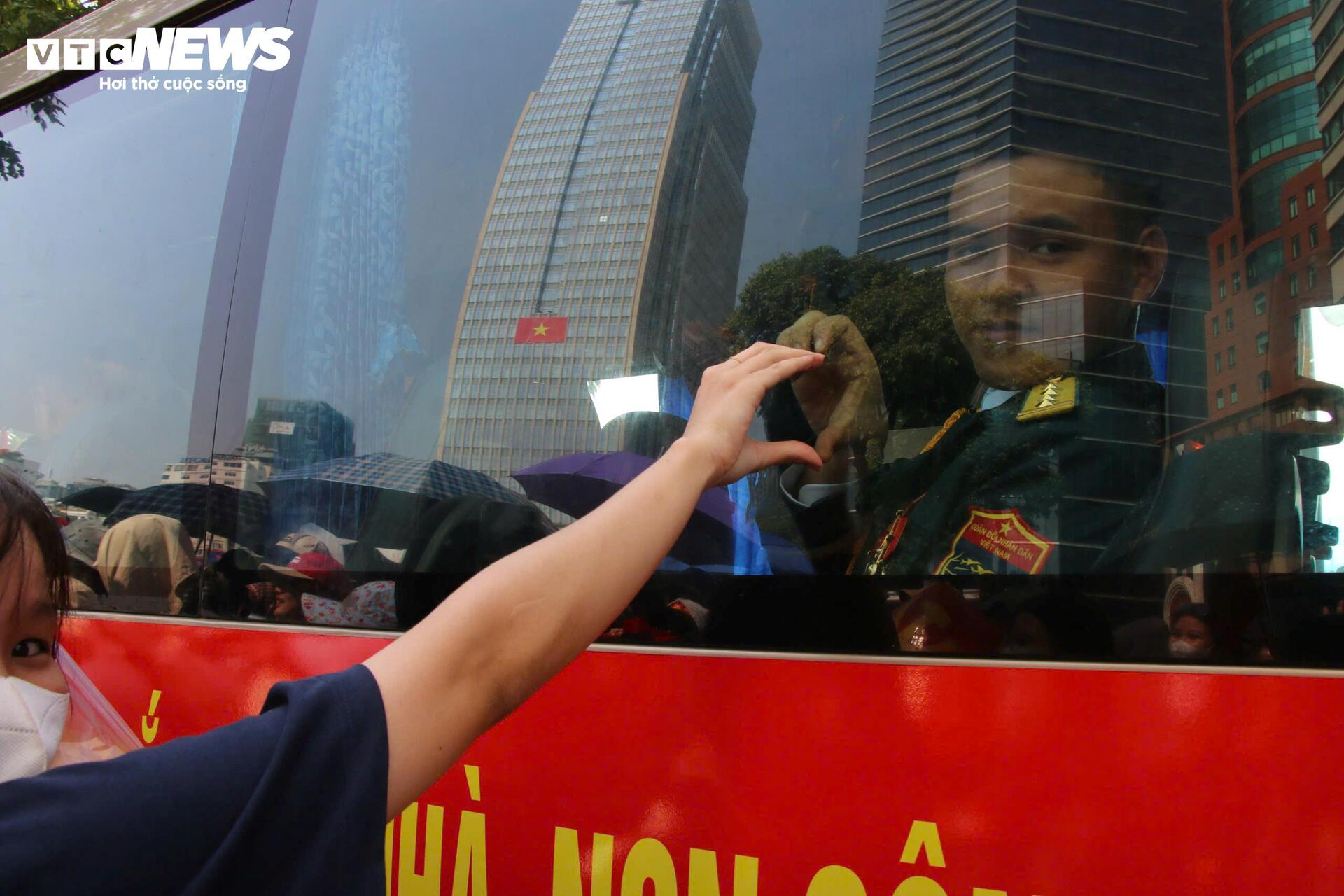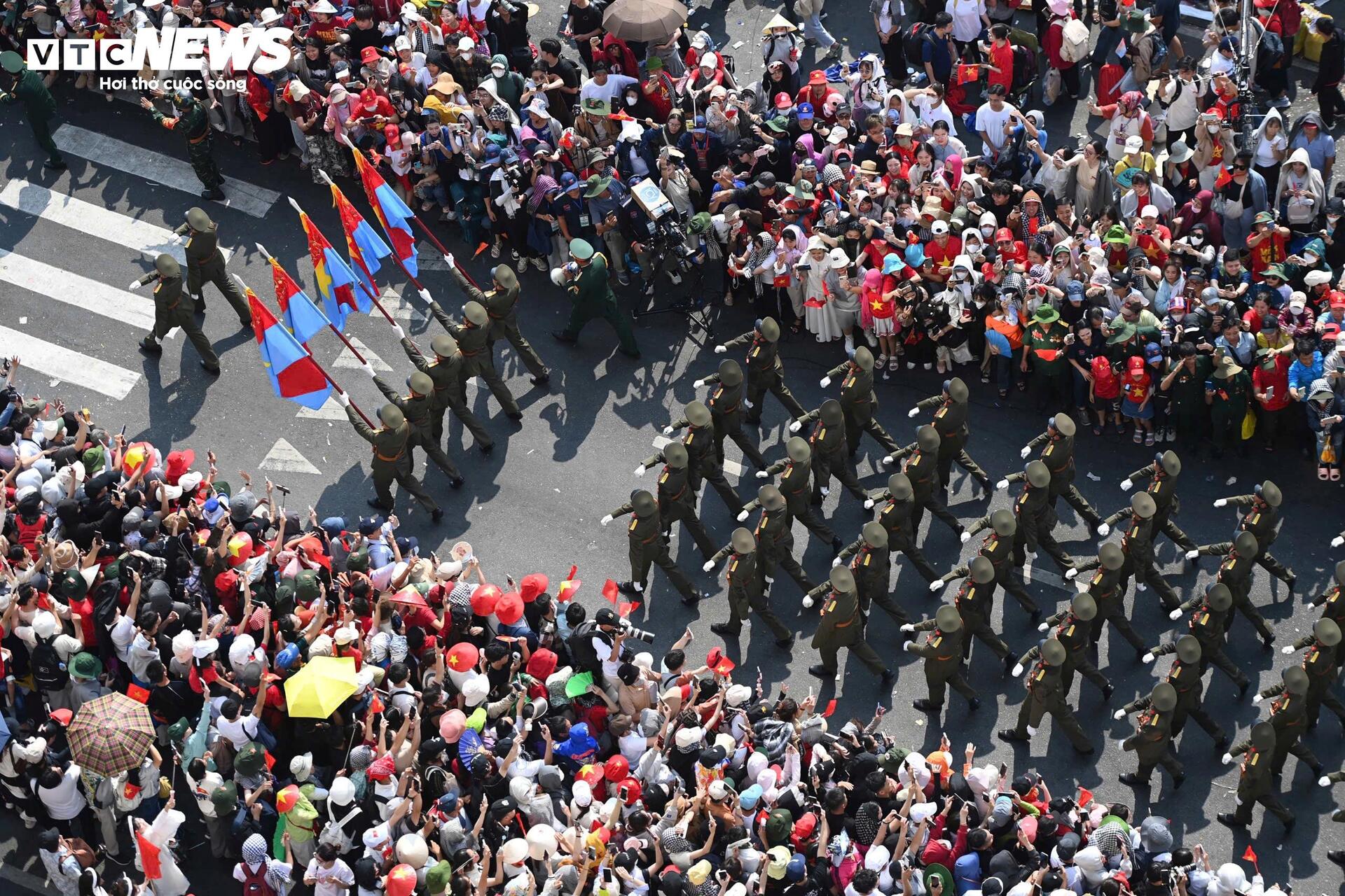 Đoàn diễu binh xuống phố, chiến sĩ đi giữa vòng tay nhân dân