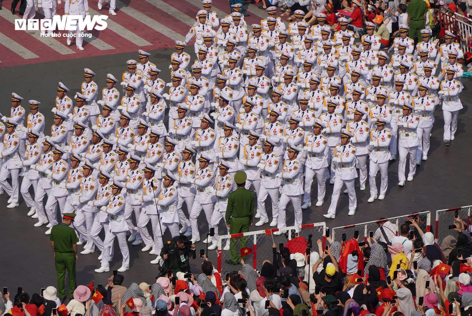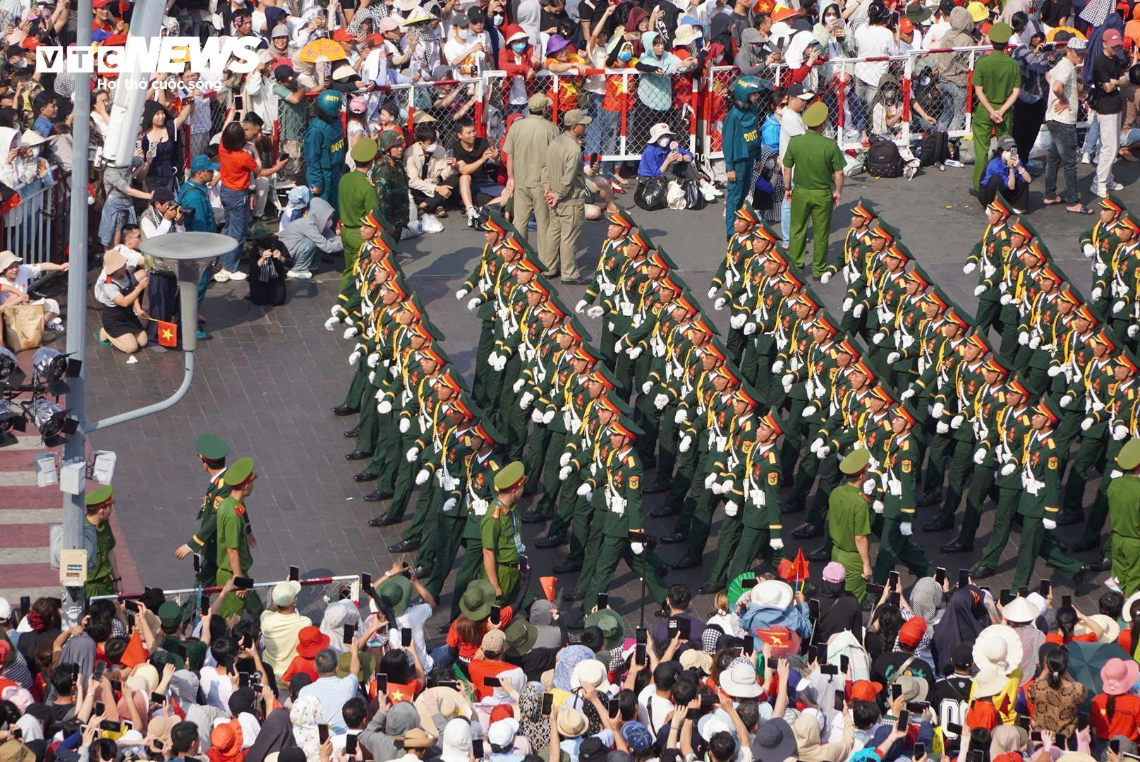 Sau khi sải bước qua khán đài, đoàn diễu binh đi theo 4 hướng để về nơi tập kết, họ đi qua nhiều tuyến phố, trong tiếng reo hò, tình thương yêu của Nhân dân.