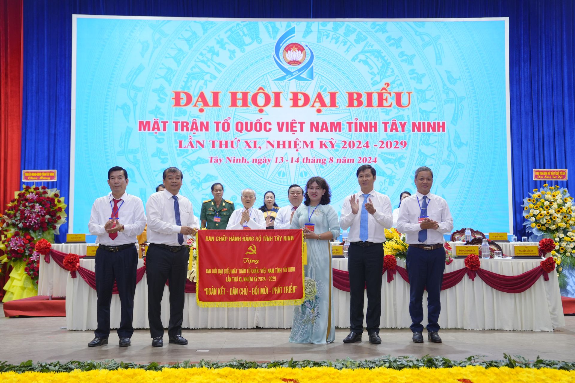 Bí thư Tỉnh uỷ Nguyễn Thành Tâm tặng bức trướng “Đoàn kết – Dân chủ - Đổi mới – Phát triển” cho Uỷ ban MTTQ Việt Nam tỉnh.