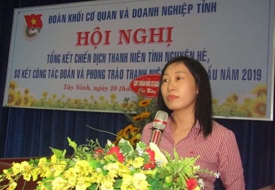 Vừa qua, Đoàn khối Cơ quan và Doanh nghiệp Tây Ninh tổ chức hội nghị Tổng kết chiến dịch Thanh niên tình nguyện hè và sơ kết công tác Đoàn, phong trào thanh niên 6 tháng đầu năm 2019.