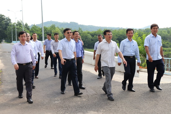 Trước buổi làm việc, đoàn đã đi khảo sát thực địa, kiểm tra cống số 1, 2, tràn xả lũ, đập chính, đập phụ... hồ Dầu Tiếng tại xã Phước Minh, huyện Dương Minh Châu.