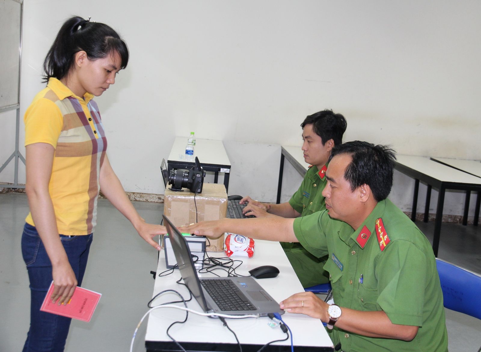 Sau khi nhận hồ sơ, một bộ phận sẽ kiểm tra lại các thông tin: tên tuổi, số CMND trong tờ khai với sổ hộ khẩu, giấy khai sinh, giấy CMND có trùng khớp hay không trước khi nhập dữ liệu vào máy.
