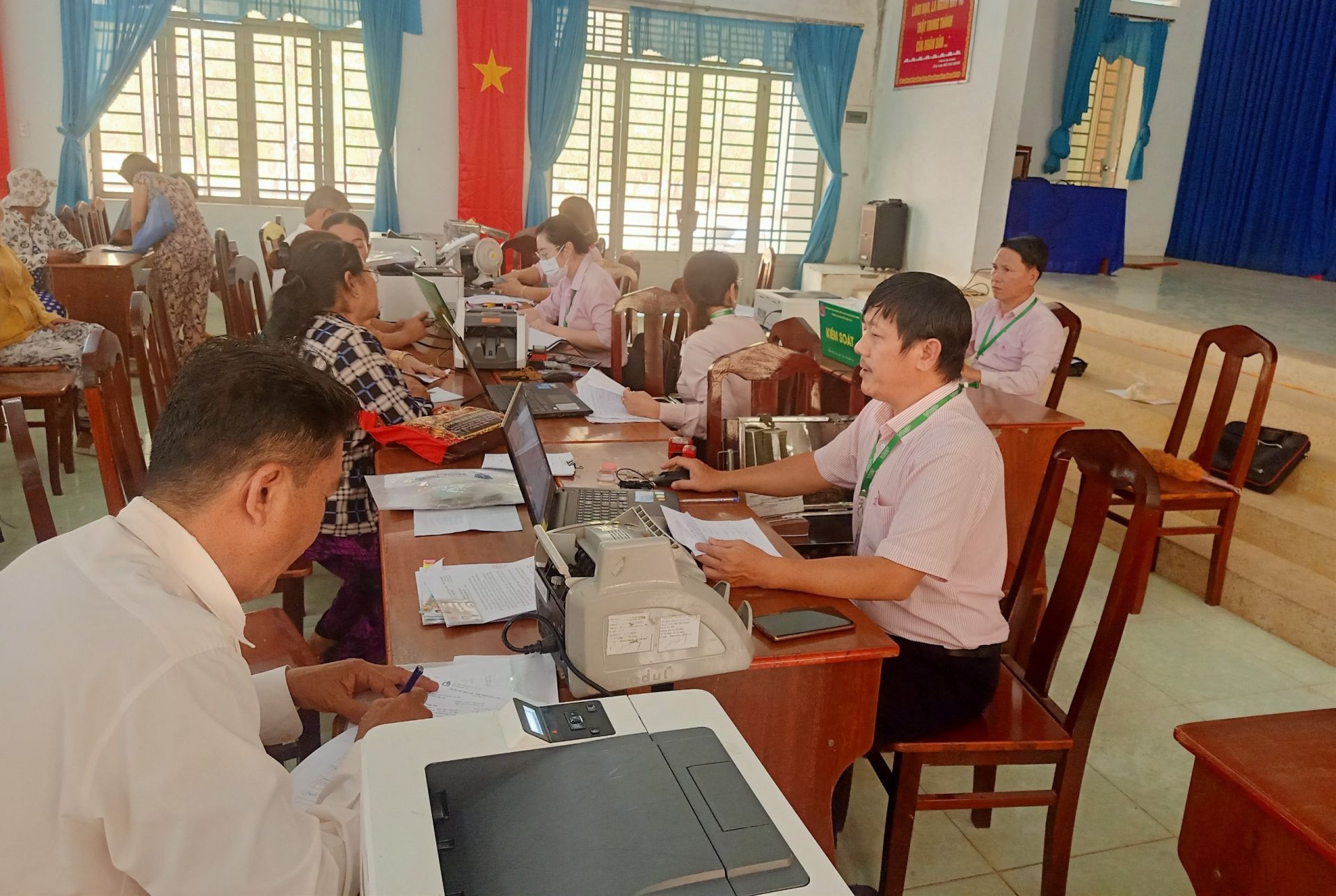 Phòng giao dịch NHCSXH huyện Bến Cầu giải ngân vốn vay ưu đãi.