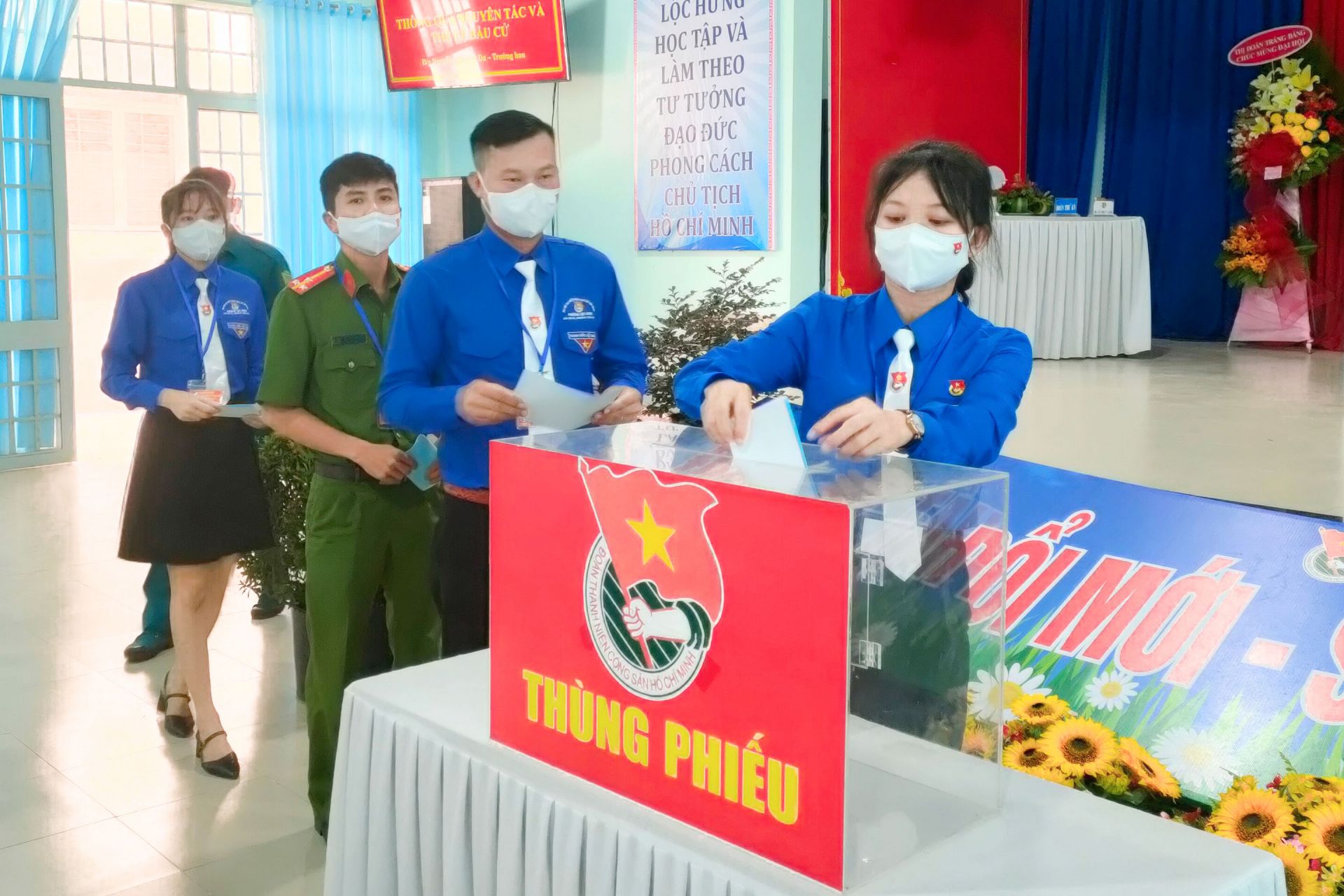 Các đại biểu bỏ phiếu bầu Ban chấp hành Đoàn phường Lộc Hưng lần thứ XII, nhiệm kỳ 2022 – 2027.