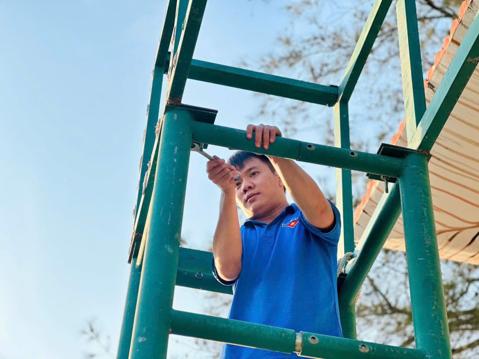 Với tinh thần xung kích và trách nhiệm, hơn 50 đoàn viên thanh niên huyện Gò Dầu tích cực tham gia công tác chuẩn bị cho hội trại, gồm xây dựng cổng trại chính, trại chỉ huy, trại các xã, thị trấn, cổng vinh quang, tạo không khí trang trọng cho ngày lễ giao nhận quân.