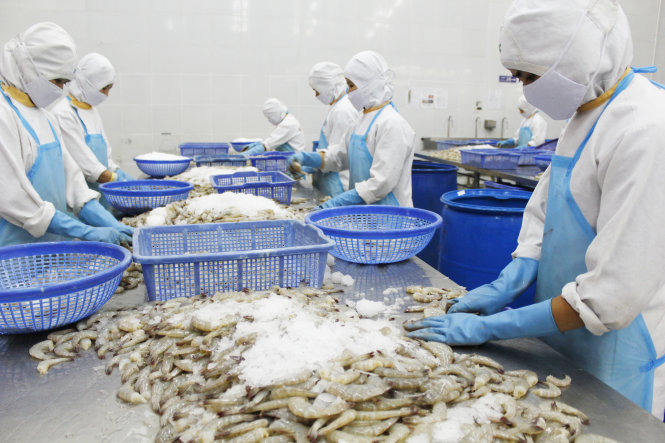 Chế biến tôm xuất khẩu tại Công ty cổ phần chế biến thủy sản Út Xi (Sóc Trăng). Đây là công ty đã xuất khẩu sang thị trường Mỹ từ 15 năm qua - Ảnh: CHÍ QUỐC