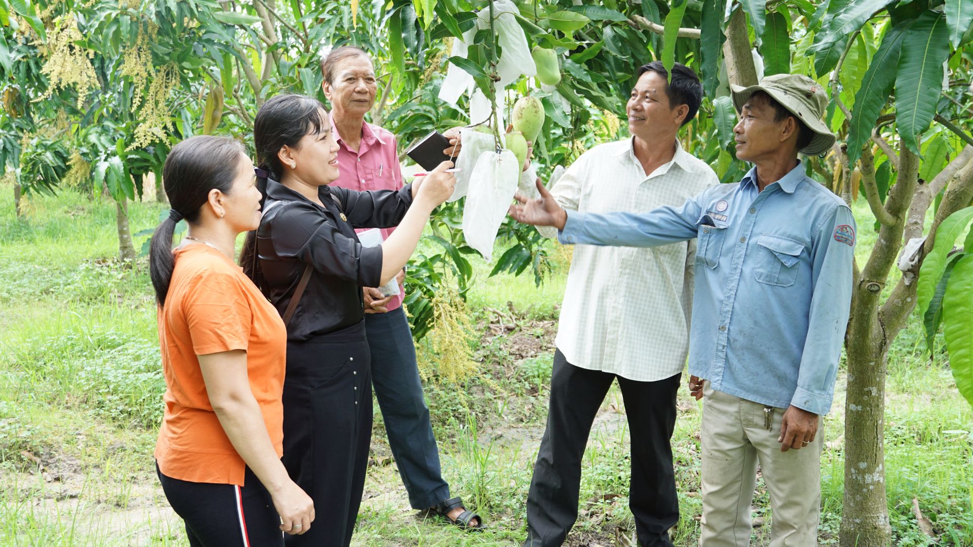 Các thành viên trong HTX xoài tứ quý Thạnh Bắc, huyện Tân Biên trao đổi kinh nghiệm sản xuất.