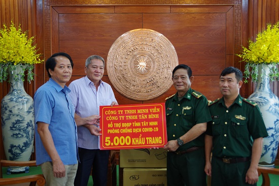Nhằm chung tay phòng chống dịch bệnh Covid 19, sáng 18.3.2020, đại diện Công ty TNHH, sản xuất, thương mại Minh Viễn và Công ty Tân Bình (huyện Tân Biên) đã trao tặng 5.000 khẩu trang y tế cho BĐBP tỉnh Tây Ninh.