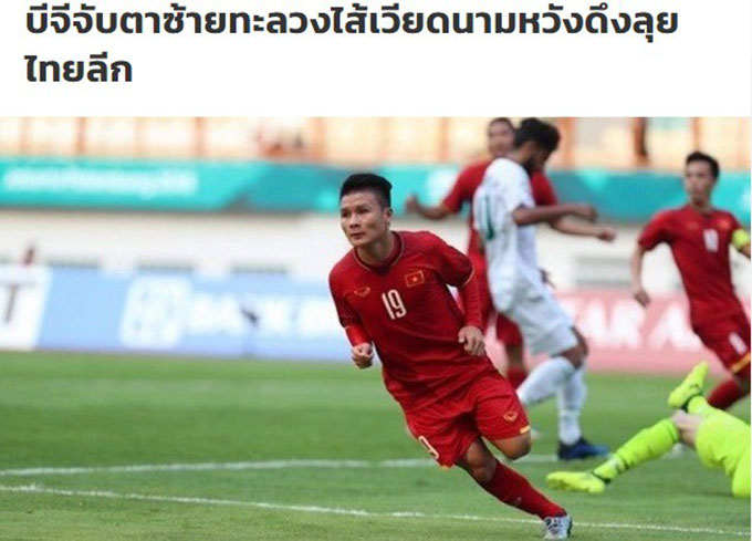 Chiều 2/9, tờ Siamsport đăng tải thông tin khẳng định rằng ban lãnh đạo CLB Bangkok Glass FC đang rất muốn chiêu mộ Quang Hải sau khi chứng kiến màn trình diễn của ngôi sao sinh năm 1997 tại ASIAD 18.