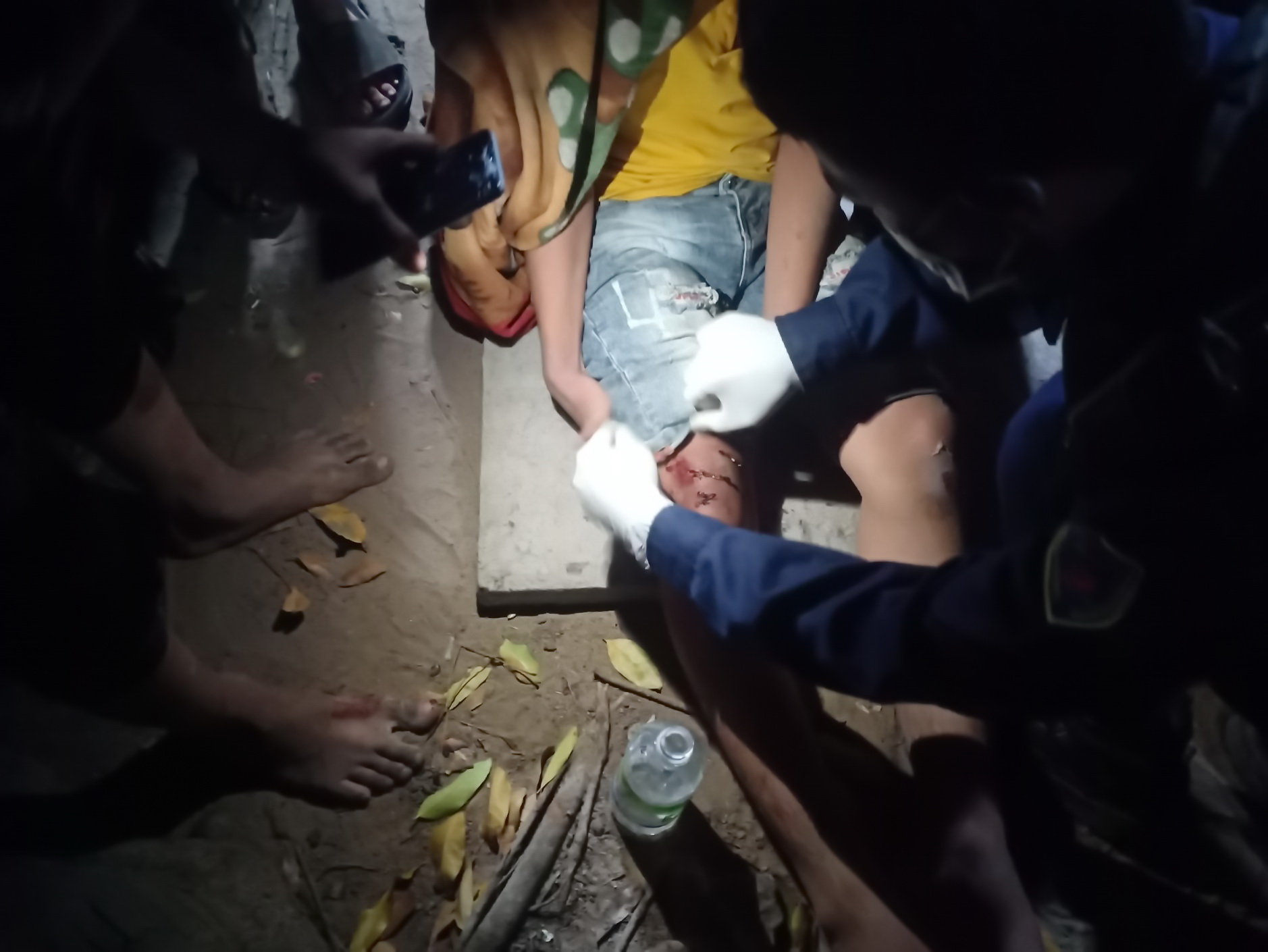 Thành viên Ðội SOS 006 Dương Minh Châu hỗ trợ đưa người bị nạn đi cấp cứu.