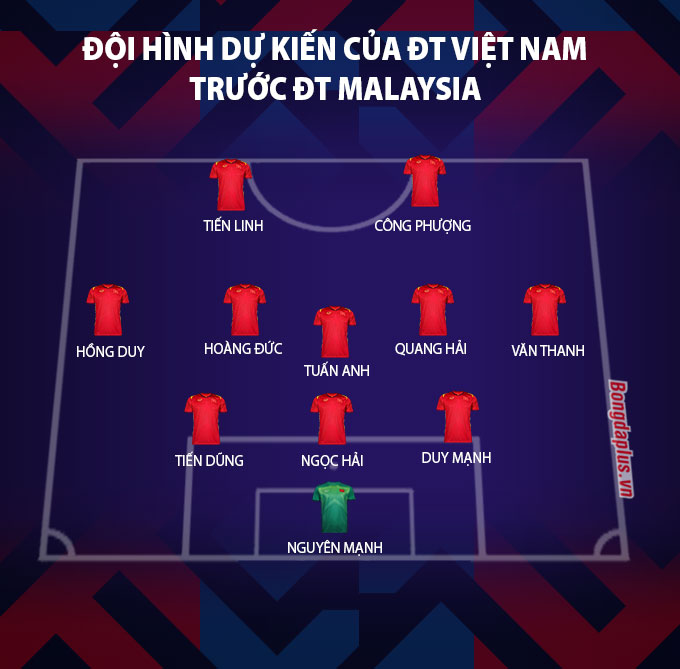 Trên hàng công, Tiến Linh sẽ chơi cao nhất. Rất có thể người đá sau lưng anh là Công Phượng, dù Văn Đức cho thấy đã ít nhiều lấy lại được bản năng sát thủ của mình trong trận gặp Lào.