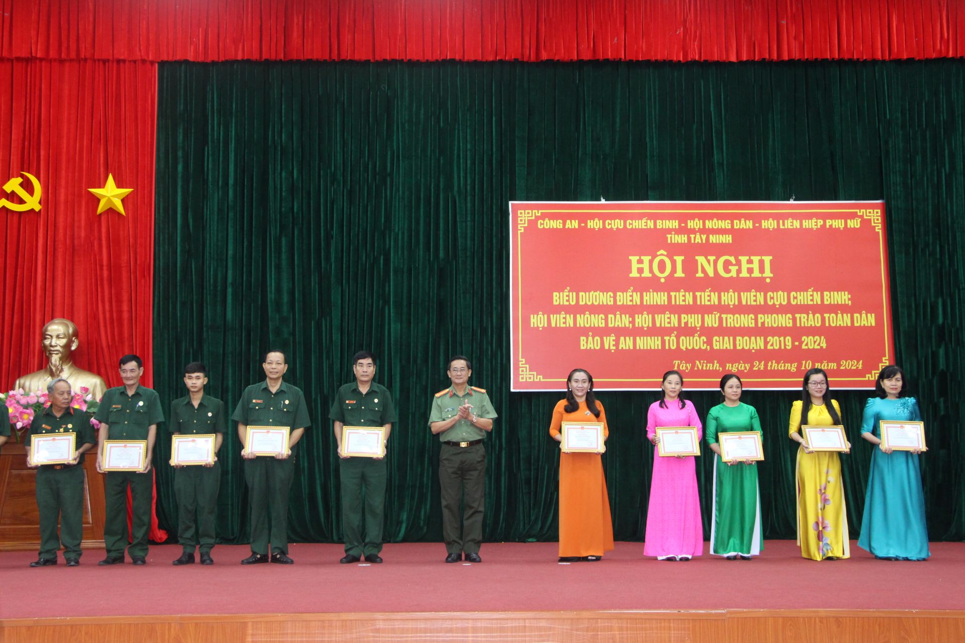 Dịp này, 28 tập thể, 28 cá nhân được Chủ tịch UBND tỉnh tặng bằng khen; Hội Nông dân tỉnh tặng bằng khen cho 1 tập thể, 10 cá nhân; Hội LHPN tỉnh tặng giấy khen cho 7 tập thể, 10 cá nhân; Giám đốc Công an tỉnh tặng giấy khen cho 30 cá nhân có thành tích xuất sắc trong phong trào Toàn dân bảo vệ an ninh Tổ quốc giai đoạn 2019 - 2024.