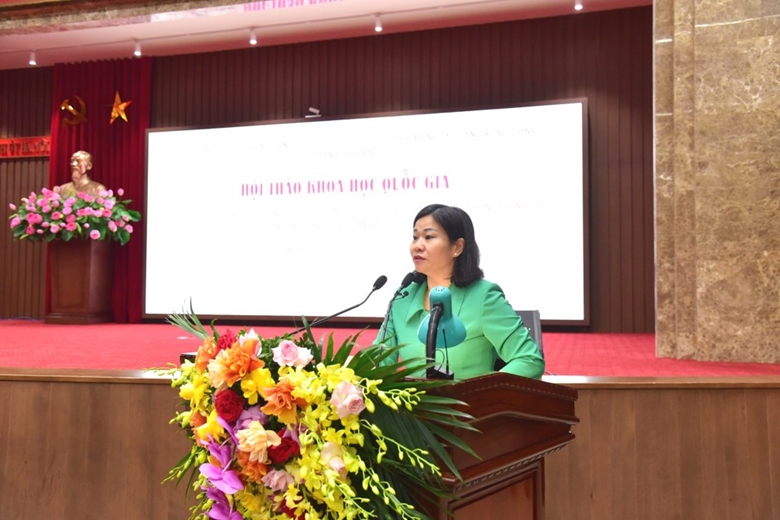 Phó Bí thư Thường trực Thành ủy Hà Nội Nguyễn Thị Tuyến phát biểu tham luận tại hội thảo