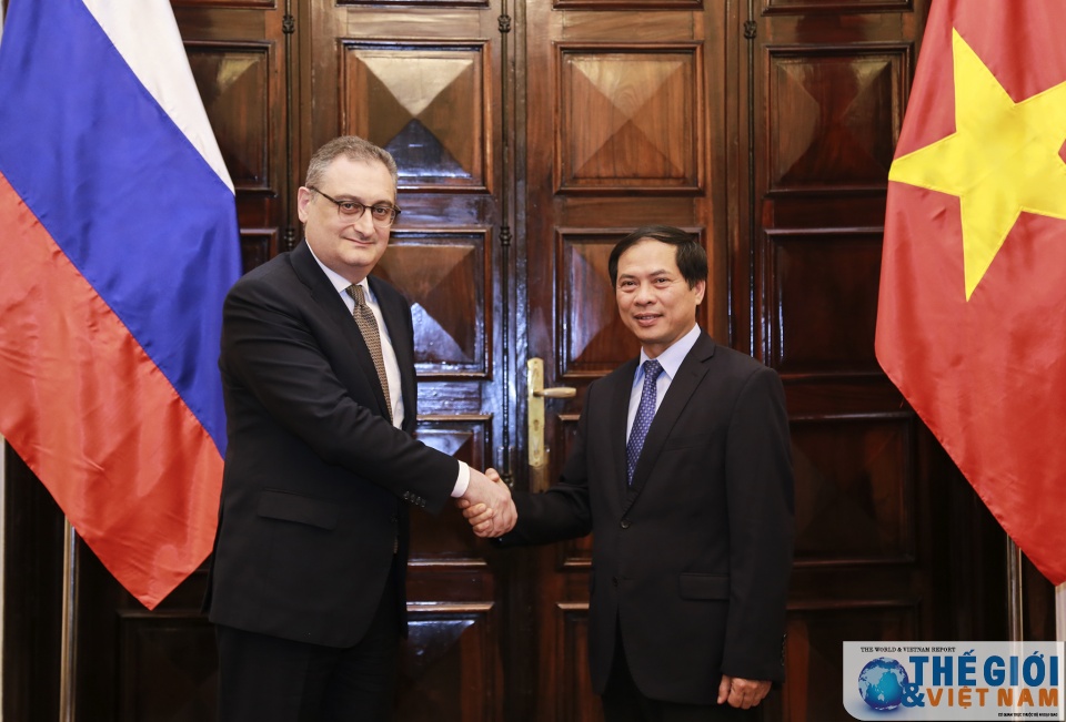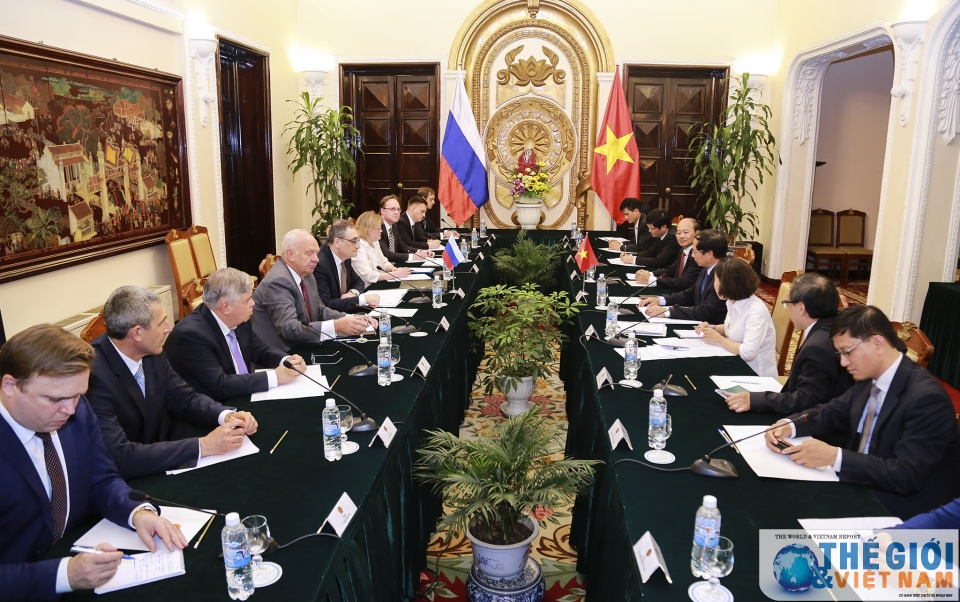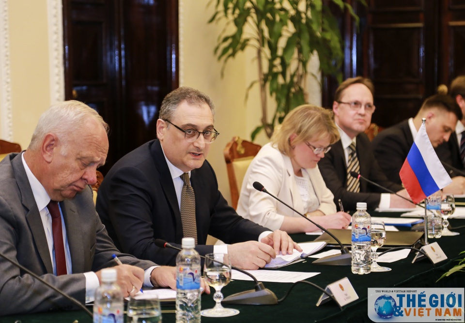 Thứ trưởng Bùi Thanh Sơn và Thứ trưởng I. Morgulov cho rằng hai nước cần tăng cường trao đổi thông tin, phối hợp chặt chẽ tại các diễn đàn quốc tế. (Ảnh: Nguyễn Hồng)