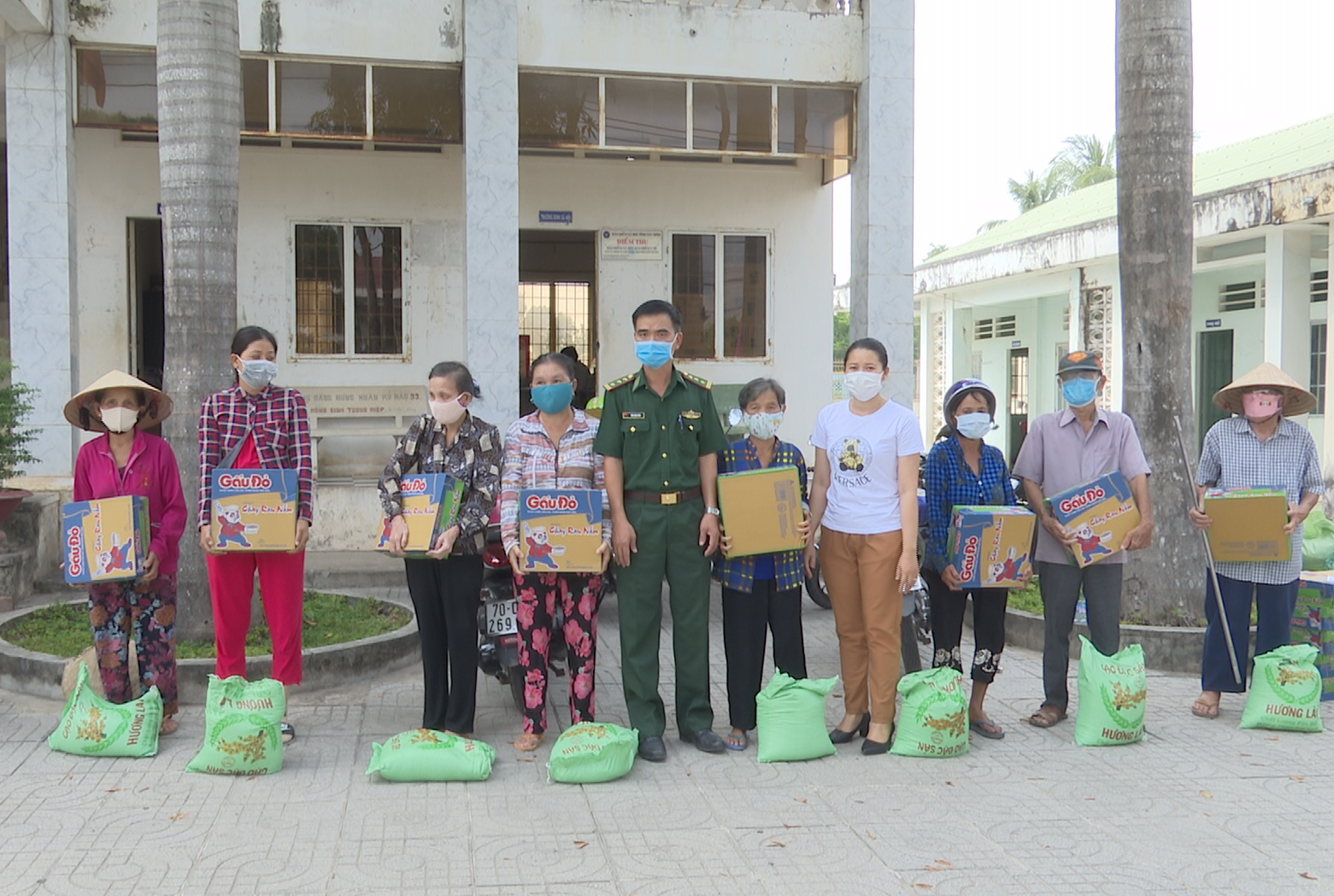 Mỗi phần quà gồm các nhu yếu phẩm có trị giá 300.000 đồng, do Đồn Biên phòng CKQT Mộc Bài vận động các mạnh thường quân trong và ngoài địa phương hỗ trợ.
