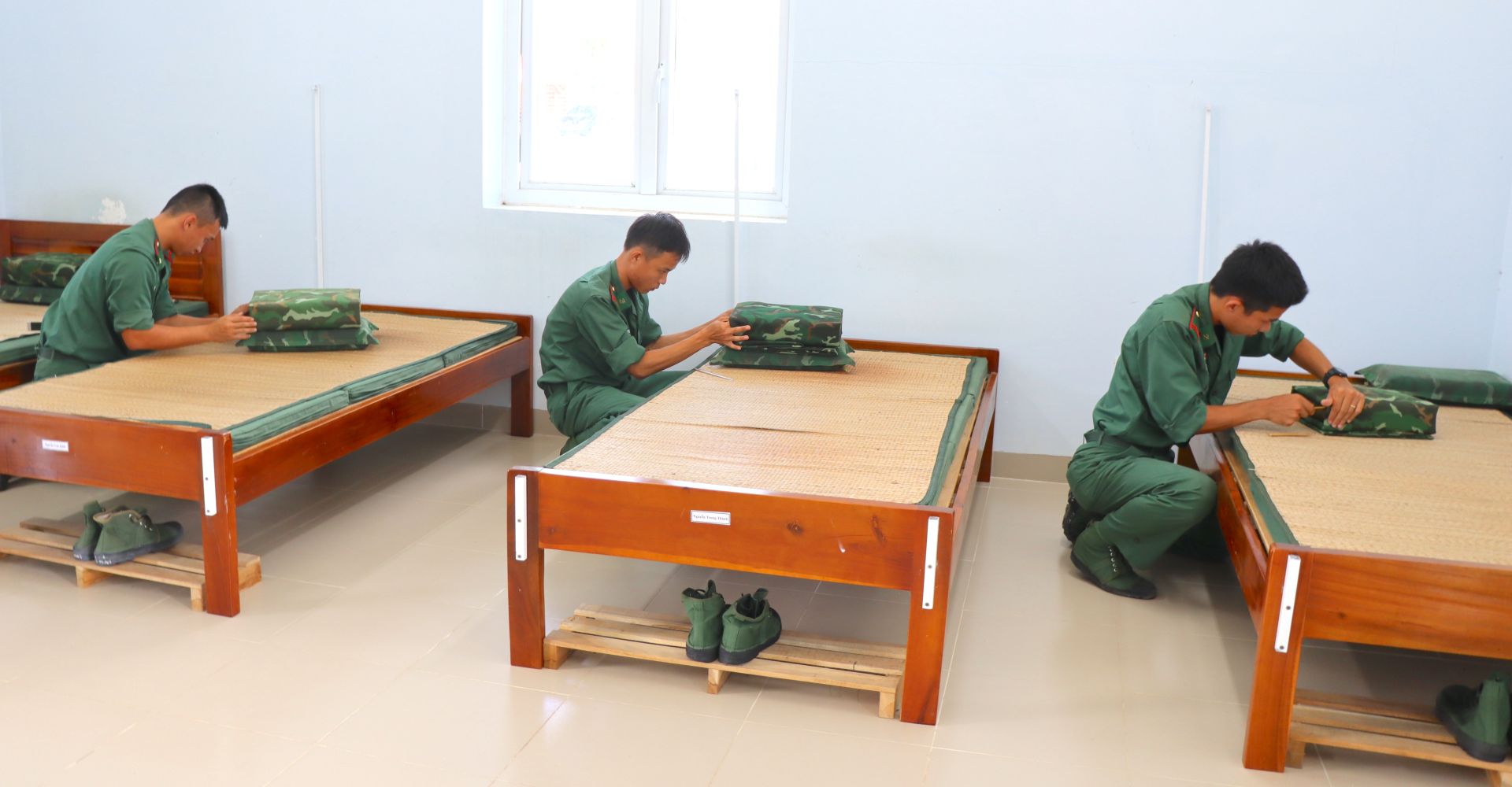 Chiến sĩ Đồn Biên phòng Cửa khẩu Phước Tân gấp nội vụ.