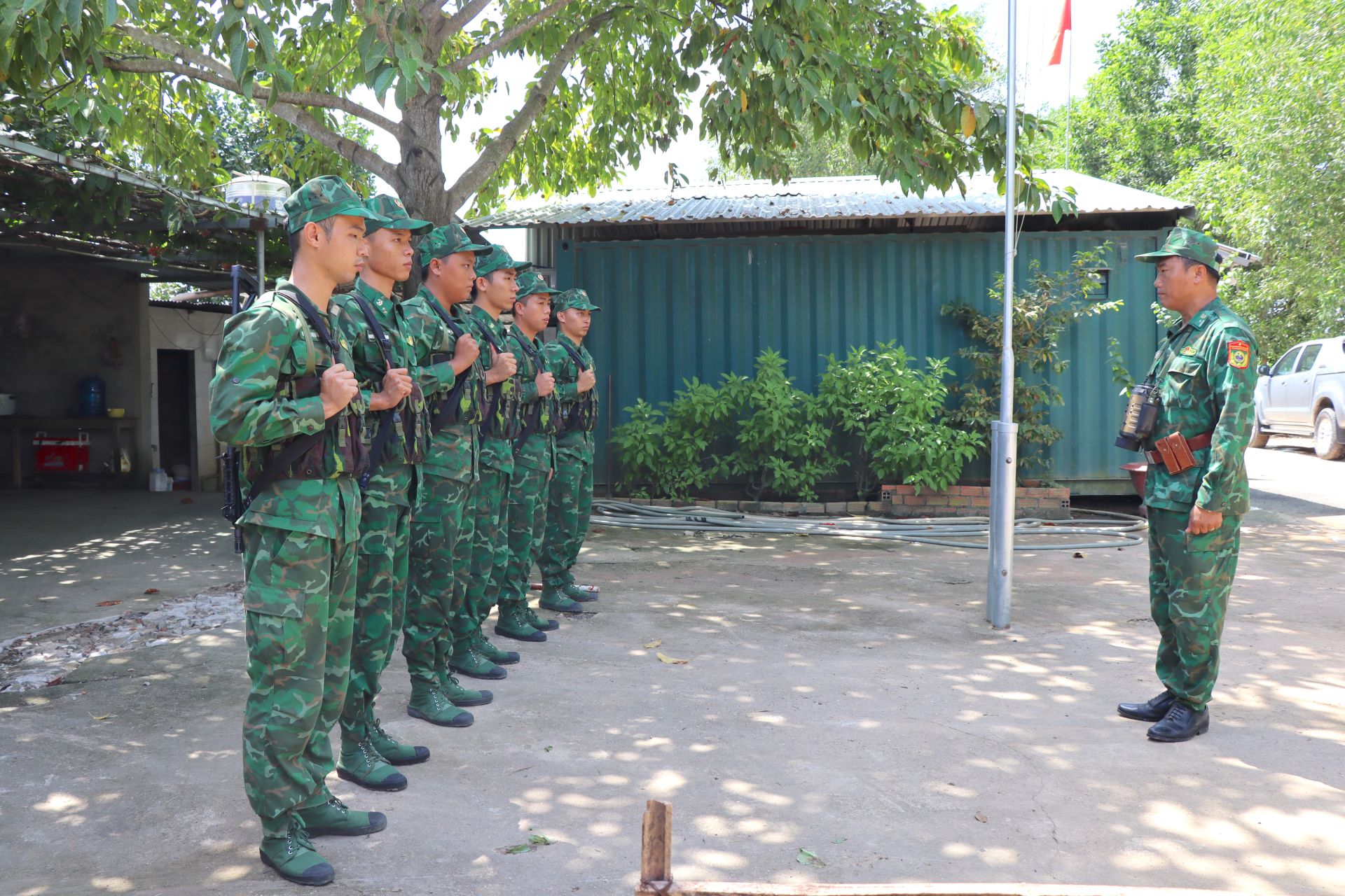 Cán bộ, chiến sĩ Đồn Biên phòng Cửa khẩu Phước Tân chuẩn bị làm nhiệm vụ tuần tra biên giới.